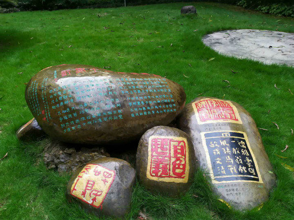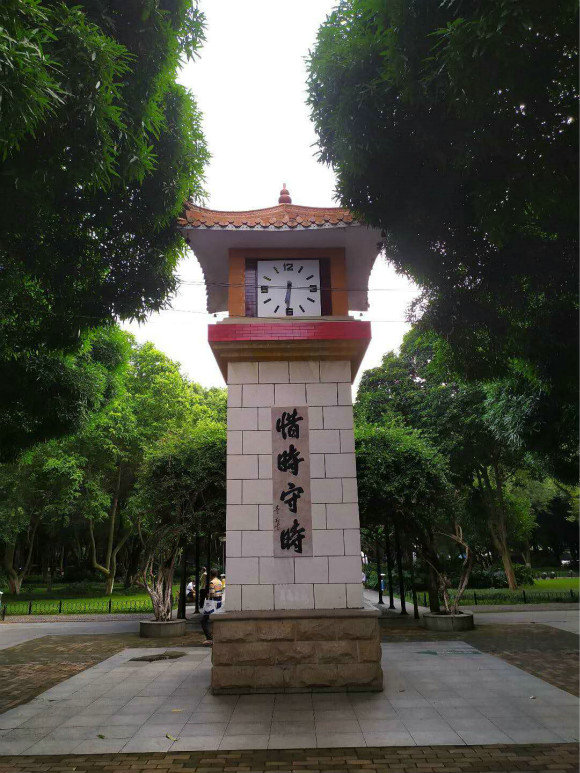 走在百色的街道上,看著工藝品店中美麗的民族服飾、手工繡球、壯錦、銅鼓等地方特色的文化遺產(chǎn),不禁為百色的多元民族民俗文化感到自豪。繼續(xù)漫步前行,來到了坐落在百色市右江區(qū)中山二路的人民公園。古樸的公園門樓安靜地聳立在傍晚的街區(qū),不多的居民與游人緩步行走在石板道上。公園不大,特有的植被高大、茂密,公園內(nèi)不多的游樂設(shè)施星布在道路兩側(cè)。在公園中心地帶的草地上,有幾塊百色印社雕刻的原石,刻有印社二十年軌跡、“百色起義”、“放翁鐵馬秋風(fēng)”等字。在公園正門內(nèi)有一個鐘塔,除了上面的鐘表外,在塔身上刻有“惜時守時”四個字。百色人民公園為周邊的民眾提供休閑休息的場所,沒有現(xiàn)代化的游樂設(shè)施,有的只是南疆特有的靜謐與沉靜。