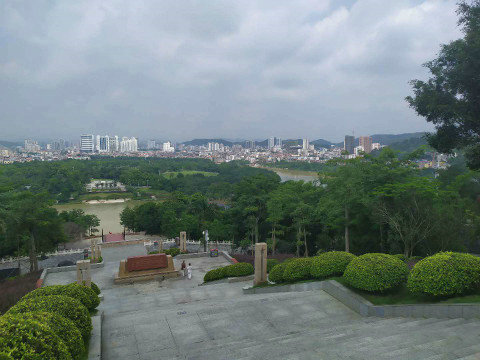 在館外的觀景臺(tái),眺望百色城區(qū),林立的高樓與翠綠的遠(yuǎn)山相映成輝,迎龍山下的右江此時(shí)顯得那么的壯麗與寧?kù)o。扶欄遠(yuǎn)眺,眼前是百色人民安寧、幸福的生活,身后是為了民族的解放而壯烈犧牲的先烈,我心潮澎湃,思緒難寧。仿佛回到那戰(zhàn)火紛飛的年代,看到先烈們穿著樸素的衣物、拿著土槍土炮與敵人進(jìn)行戰(zhàn)斗,感受著他們不怕?tīng)奚^勇向前的大無(wú)畏革命精神和革命氣概,回想著鄧小平等老一輩無(wú)產(chǎn)階級(jí)革命家的光輝業(yè)績(jī)和如今來(lái)之不易的獨(dú)立、民主、和平的幸福生活。