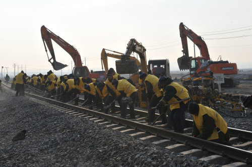 凝心聚力逐夢(mèng)想,艱苦鏖戰(zhàn)破風(fēng)浪。中鐵二十三局集團(tuán)二公司哈佳鐵路項(xiàng)目部已經(jīng)成立5年,從對(duì)東佳木斯站場(chǎng)進(jìn)行改造到2018年9月30日全線開(kāi)通運(yùn)營(yíng),再到2019年的佳木斯站新增旅客站臺(tái)工程,他們經(jīng)歷了風(fēng)風(fēng)雨雨,他們斗嚴(yán)寒、戰(zhàn)酷暑,與時(shí)間賽跑,他們敢攻關(guān)、有拼勁,與困難較量,哈佳鐵路線、佳木斯站、學(xué)府路、和平街……每一處都留下了他們的印記。眼眉流下的汗水,展現(xiàn)的是鐵建人堅(jiān)持夢(mèng)想的堅(jiān)韌與無(wú)畏,鬢角處凝結(jié)的冰花,折射出的是鐵建人為民堅(jiān)守的執(zhí)著與無(wú)悔,黑夜中結(jié)伴的背影,透視出鐵路人與民同行的忠誠(chéng)與擔(dān)當(dāng),讓初心在嚴(yán)寒中仍有溫度,讓使命在黑夜中亦有光芒。