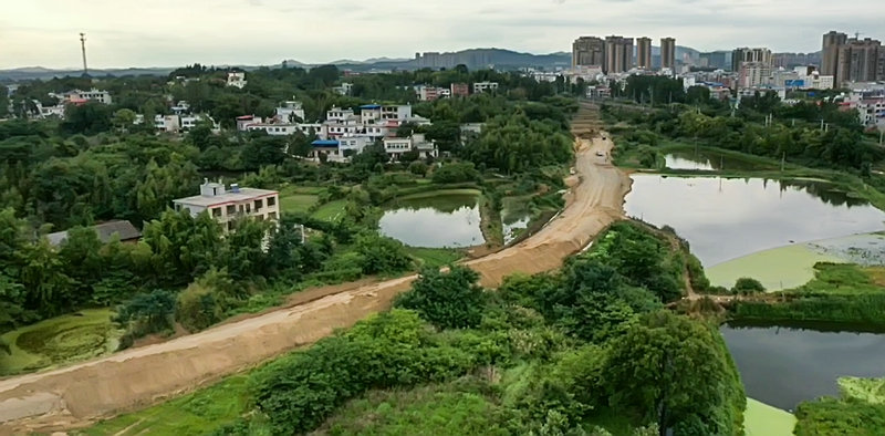 (航拍建設(shè)中的鋪軌基地與京九鐵路浠水站聯(lián)絡(luò)線)