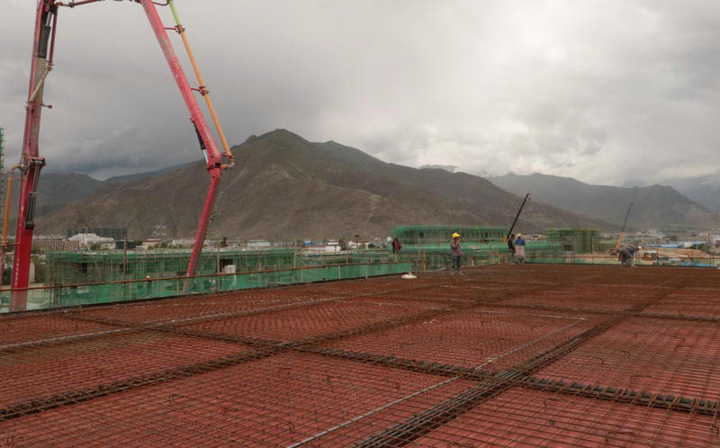 6月27日10時(shí),隨著最后一方混凝土澆筑完成,經(jīng)中鐵二十一局四公司拉林鐵路項(xiàng)目部70余名施工人員歷時(shí)兩個(gè)月的艱苦鏖戰(zhàn),拉林鐵路拉薩西機(jī)務(wù)段單身宿舍順利封頂。