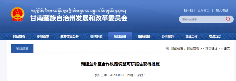 8月13日,為進(jìn)一步完善區(qū)域快速鐵路網(wǎng)布局,改善沿線交通基礎(chǔ)設(shè)施條件,促進(jìn)“三區(qū)三州”深度貧困地區(qū)群眾脫資致富和經(jīng)濟(jì)社會高質(zhì)量發(fā)展,國鐵集團(tuán)、甘肅省人民政府同意調(diào)整新建蘭州至合作鐵路可研報告,并以鐵發(fā)改函〔2020〕290號對新建蘭州至合作鐵路調(diào)整可研報告予以批復(fù)。