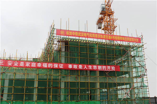 圖:4月16日,重慶軌道交通4號(hào)線二期主變電所主體結(jié)構(gòu)順利封頂。楊杰攝