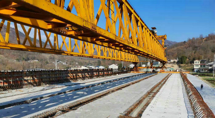 廣平高速公路TJ13合同段項(xiàng)目位于綿陽市平武縣境內(nèi),全長7.62公里,含大橋三座。此次順利貫通的蘇家壩大橋全長348米,架設(shè)T梁共計(jì)100榀(30m梁60榀,40m梁40榀),本次架設(shè)的最后一榀梁長40米,重125噸,采用專業(yè)架橋機(jī)架設(shè)。由于橋梁墩柱高,一定程度上增加了施工難度和安全風(fēng)險(xiǎn),在T梁架設(shè)過程中,項(xiàng)目安全、技術(shù)、質(zhì)量管理人員全程監(jiān)督控制,切實(shí)保障架設(shè)作業(yè)按照施工方案順利進(jìn)行,實(shí)現(xiàn)了該大橋T梁安全架設(shè)無事故。