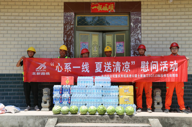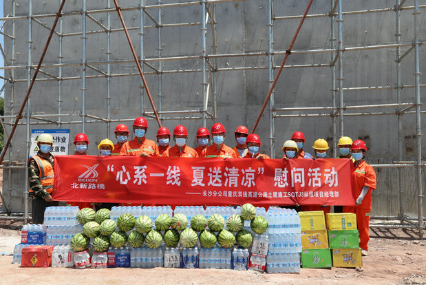 為確保廣大員工和勞務(wù)工身體健康和生命安全,全身心投入到繁忙的生產(chǎn)建設(shè)中,該標(biāo)段及時為他們發(fā)放了涼茶、西瓜、礦泉水、仁丹、藿香正氣水等防暑降溫物資,將組織的關(guān)愛送到他們的心坎上,極大鼓舞了一線建設(shè)者的信心和斗志。