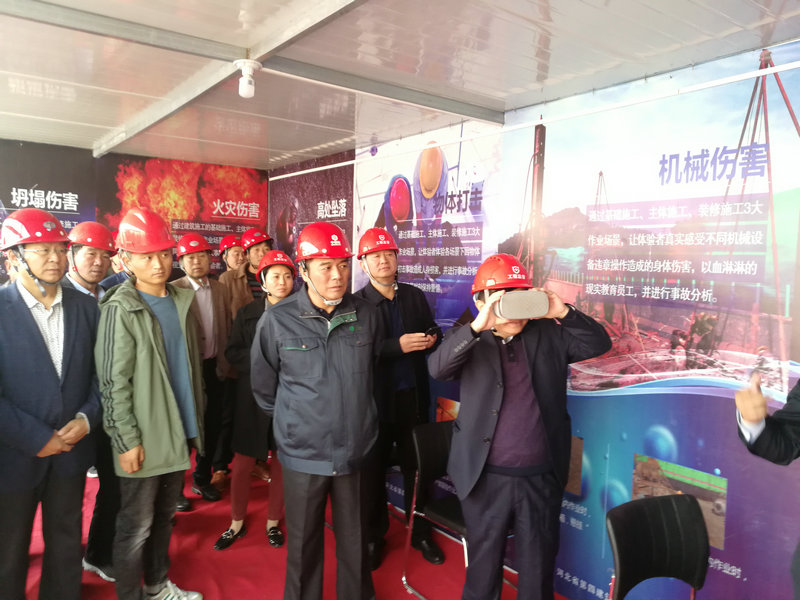 與會人員參觀了項(xiàng)目部的全方位噴淋系統(tǒng)、安全體驗(yàn)區(qū)和VR安全體驗(yàn)館,康會彩戴上眼鏡現(xiàn)場進(jìn)行了VR安全體驗(yàn),對項(xiàng)目部先進(jìn)的安全體驗(yàn)設(shè)備給予了表揚(yáng)。大家觀摩了模塊化防護(hù)欄桿、標(biāo)準(zhǔn)化鋼筋加工區(qū)風(fēng)險(xiǎn)區(qū)劃分、技術(shù)交底二維碼等創(chuàng)新應(yīng)用,并對項(xiàng)目部風(fēng)險(xiǎn)區(qū)劃分、將漫畫融入到圍擋中的做法給予了高度贊揚(yáng)??禃时硎荆袃Z新樂項(xiàng)目部有很多方面值得學(xué)習(xí)和借鑒,希望觀摩單位認(rèn)真學(xué)習(xí),積極借鑒先進(jìn)的管理理念和做法,并在全市范圍內(nèi)推廣。