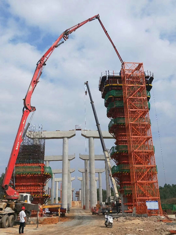 據(jù)了解,108號薄壁空心墩是該項目的重要施工節(jié)點之一,是該項目移動模架的安裝、架設(shè)起點。全橋共有40個薄壁空心墩,墩高從22.146m~37.944m不等,此次完成封頂?shù)挠曳?08號墩,墩高22.146米。調(diào)順跨海大橋薄壁空心墩墩高、壁薄、設(shè)計保護層為漸變保護層,施工難度大,技術(shù)要求高,安全隱患多,是調(diào)順跨海大橋施工的重難點任務(wù)之一。