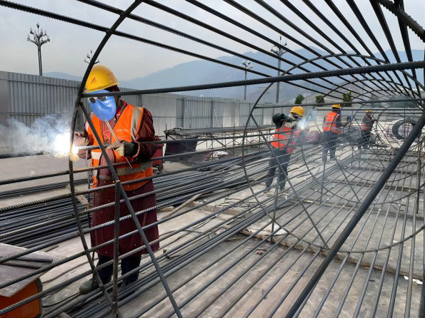 走進項目施工現(xiàn)場,機器轟鳴“奏樂”,現(xiàn)場鋼筋綁扎、模板支設(shè)、混凝土澆筑,敲打聲、吆喝聲此起彼伏,一幅大干快上的繁忙景象。
