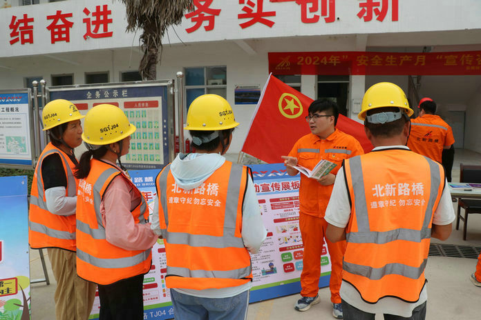 宿州訊(通訊員 晏泰杰 萬廣舉)今年6月是第23個全國“安全生產(chǎn)月”,為普及安全生產(chǎn)法律法規(guī)和自救互救常識,進一步增強全項目安全防范意識,提高一線工人及干部職工的應(yīng)急避險和自救互救能力,推動“安全生產(chǎn)月”宣傳活動走深走實。6月16日,北新融建公司安徽宿固高速公路TJ04合同段項目經(jīng)理部開展了以“人人講安全、個個會應(yīng)急--暢通生命通道”為主題的“6·16”安全宣傳咨詢?nèi)栈顒印?/p>