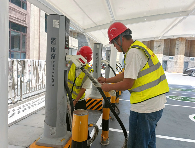 同時(shí),項(xiàng)目部構(gòu)建起全鏈條協(xié)同機(jī)制,對(duì)內(nèi)優(yōu)化施工組織方案,對(duì)外與多部門(mén)建立“綠色通道”,以并聯(lián)審批、容缺受理等創(chuàng)新舉措大幅壓縮建設(shè)周期。面對(duì)山地施工的復(fù)雜地形,建設(shè)團(tuán)隊(duì)采用模塊化運(yùn)輸、裝配式安裝工藝,在保障工程質(zhì)量的前提下,單站點(diǎn)建設(shè)效率大幅提升。建設(shè)期間,項(xiàng)目嚴(yán)格執(zhí)行國(guó)標(biāo)充電設(shè)施安全規(guī)范,選用具備IP54防護(hù)等級(jí)的充電樁設(shè)備,配套智能漏電保護(hù)、過(guò)溫報(bào)警裝置。每個(gè)站點(diǎn)均設(shè)置標(biāo)準(zhǔn)化消防設(shè)施,安裝全天候監(jiān)控系統(tǒng),并建立月度巡檢、季度維保的長(zhǎng)效機(jī)制,以“人防+技防”雙重保障,筑牢安全防線。