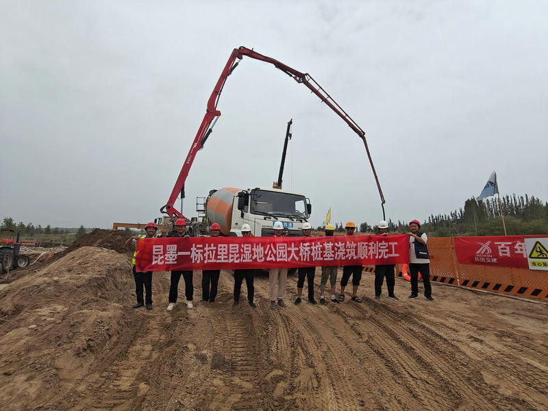 兵團(tuán)交建公司承建的昆墨公路一標(biāo)拉里昆濕地公園大橋最后一根樁基澆筑完成,標(biāo)志著該橋梁基礎(chǔ)工程取得階段性勝利,為后續(xù)承臺(tái)、墩柱施工奠定堅(jiān)實(shí)基礎(chǔ)。