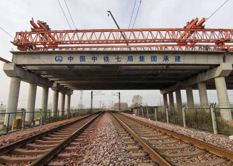河南新鄉(xiāng)消息12月12日11時(shí),經(jīng)過12個(gè)Ⅱ級要點(diǎn)施工,中鐵七局鄭州公司承建的國道107新鄉(xiāng)境改建工程項(xiàng)目跨新兗鐵路大橋順利完成10片40米箱梁的架設(shè)任務(wù)。