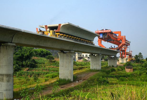 據(jù)了解,川南城際鐵路內(nèi)江至自貢至瀘州線站前工程CN-5標(biāo)段,截至3月18日該工程瀘州段還有500孔730噸預(yù)制箱梁的運(yùn)架施工,期間架橋機(jī)需要通過(guò)32處路基、7處連續(xù)梁、2座隧道、1處瀘州車站低位下穿??鄢陨嫌绊憰r(shí)間,實(shí)際平均每天需要保證架設(shè)3孔箱梁。經(jīng)過(guò)十天以來(lái)的搶工,截至目前每天平均完成4孔箱梁架設(shè),中鐵二十三局四公司運(yùn)架梁專業(yè)化公司川南運(yùn)架項(xiàng)目這種拼搏精神受到川南城際鐵路業(yè)主兩次會(huì)議上的高度贊揚(yáng)和認(rèn)同。