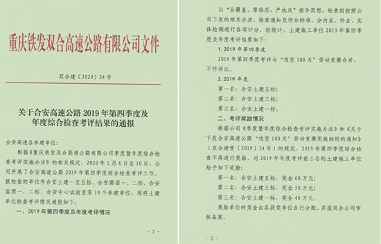 2019年是該項(xiàng)目部攻堅(jiān)之年,合安項(xiàng)目部堅(jiān)持黨建促生產(chǎn),以“黨員質(zhì)量監(jiān)督崗”活動(dòng)為抓手,扎實(shí)推進(jìn)項(xiàng)目標(biāo)準(zhǔn)化建設(shè),成功克服偏遠(yuǎn)山區(qū)等工程建設(shè)區(qū)位劣勢(shì),順利完成了公司和業(yè)主下達(dá)的年度生產(chǎn)目標(biāo),并在安全、質(zhì)量、環(huán)水保等各方面均取得了良好業(yè)績,贏得了業(yè)主的高度認(rèn)可。