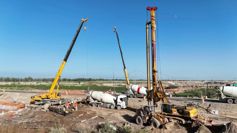 塔北二干渠大橋全長(zhǎng)308米,采用6x30m變寬現(xiàn)澆箱梁+3x40m 連續(xù)T梁組合,是該標(biāo)段最長(zhǎng)的大橋和重要的控制性工程,該大橋橫跨玉阿新公路、塔北二干渠及農(nóng)田機(jī)耕道,與柳源互通接壤。大橋樁基共有50根,最大孔深達(dá)60米,最大孔徑為2米,所處地質(zhì)條件復(fù)雜,存在較厚的粉土層,容易出現(xiàn)塌孔、擴(kuò)孔問(wèn)題。為加快施工進(jìn)度,保質(zhì)保量完成節(jié)點(diǎn)任務(wù),根據(jù)地質(zhì)條件和施工環(huán)境,項(xiàng)目多次組織召開(kāi)樁基施工技術(shù)質(zhì)量交流會(huì),多措施解決施工生產(chǎn)中安全質(zhì)量和施工進(jìn)度問(wèn)題。一是加強(qiáng)施工過(guò)程控制,實(shí)施監(jiān)理、技術(shù)員全程旁站,把控各個(gè)工序環(huán)節(jié)確保施工流程符合標(biāo)準(zhǔn)化規(guī)范要求,保障施工質(zhì)量;二是加緊資源調(diào)配與現(xiàn)場(chǎng)保障,合理調(diào)整人員、機(jī)械等資源,保障現(xiàn)場(chǎng)物資、機(jī)械供應(yīng)滿足施工需求,以滿足施工生產(chǎn)需求,保障施工進(jìn)度;三是加大施工現(xiàn)場(chǎng)安全巡查和督導(dǎo)力度,落實(shí)安全責(zé)任制,將技術(shù)交底內(nèi)容提前向所有作業(yè)人員進(jìn)行現(xiàn)場(chǎng)交底,及時(shí)處理施工過(guò)程中出現(xiàn)的問(wèn)題,確保樁基快速成孔。