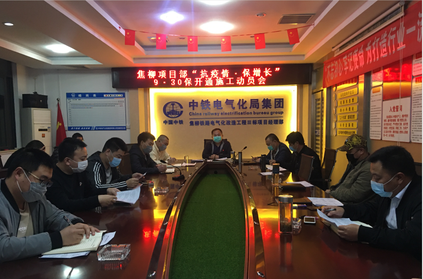 為積極響應(yīng)南寧鐵路局集團(tuán)有限公司董事長、黨委書記康維3月13日下午在焦柳鐵路融安改遷段現(xiàn)場工作會上提出的“焦柳電化9.30保開通”的建設(shè)要求。14日上午,中鐵電氣化局集團(tuán)有限公司焦柳項(xiàng)目部組織領(lǐng)導(dǎo)干部、作業(yè)隊(duì)長召開了“抗疫情·保增長·9.30保開通”施工動(dòng)員會。